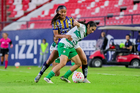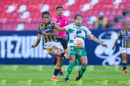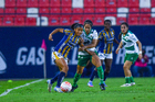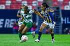 San Luis Potosí, San Luis Potosí, 1 de noviembre de 2025. Aidin López y Dania Padilla, durante el partido correspondiente a la jornada 17 del torneo Apertura 2025 de la Liga BBVA MX Femenil, entre el Atlético San Luis y las Guerreras de Santos Laguna, realizado en el estadio Alfonso Lastras. Foto: Imago7/ Olimpia Puga