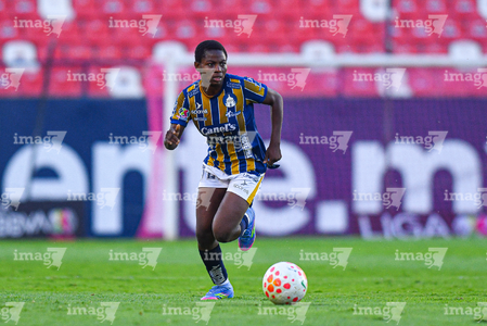 San Luis Potosí, San Luis Potosí, 1 de noviembre de 2025. Farlyn Caicedo, durante el partido correspondiente a la jornada 17 del torneo Apertura 2025 de la Liga BBVA MX Femenil, entre el Atlético San Luis y las Guerreras de Santos Laguna, realizado en el estadio Alfonso Lastras. Foto: Imago7/ Olimpia Puga