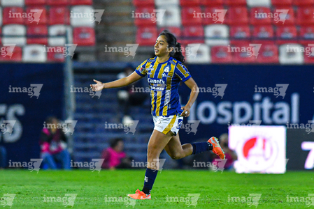 San Luis Potosí, San Luis Potosí, 1 de noviembre de 2025. Anahí Gómez, durante el partido correspondiente a la jornada 17 del torneo Apertura 2025 de la Liga BBVA MX Femenil, entre el Atlético San Luis y las Guerreras de Santos Laguna, realizado en el estadio Alfonso Lastras. Foto: Imago7/ Hugo Martinez
