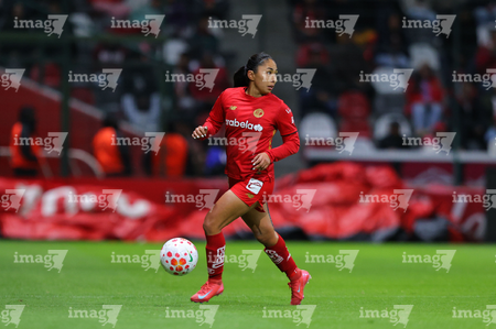 Toluca, Estado de México, 22 de septiembre de 2025. Mitsy Ramirez, durante el partido correspondiente a la jornada 12 del torneo Apertura 2025 de la Liga BBVA MX Femenil, entre las Diablas Rojas del Toluca y las Águilas del América, realizado en el estadio Nemesio Diez. Foto: Imago7/Jesús Esquivel