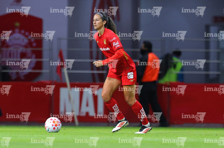 Toluca, Estado de México, 19 de julio de 2025. Victoria López, durante el partido correspondiente a la jornada 2 del torneo Apertura 2025 de la Liga BBVA MX Femenil, entre las Diablas Rojas del Toluca y las Guerreras de Santos Laguna, realizado en el estadio Nemesio Diez. Foto: Imago7/Jesús Esquivel