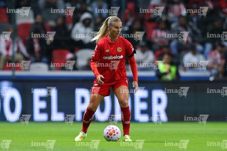 Toluca, Estado de México, 9 de noviembre de 2025. Abby Erceg, durante el partido correspondiente a la vuelta de los Cuartos de Final del torneo Apertura 2025 de la Liga BBVA MX Femenil, entre las Diablas Rojas del Toluca y las Chivas Rayadas del Guadalajara, realizado en el estadio Nemesio Diez. Foto: Imago7/ Jesús Esquivel