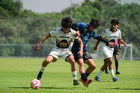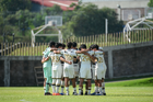 Ciudad de México, 1 de noviembre de 2025. Jugadores de Querétaro, durante el partido correspondiente a la jornada 17 del torneo Apertura 2025 de la Liga BBVA MX categoría Sub17, entre los Pumas de la UNAM y los Gallos Blancos del Querétaro, realizado en Cantera. Foto: Imago7/ Alexis Chavez