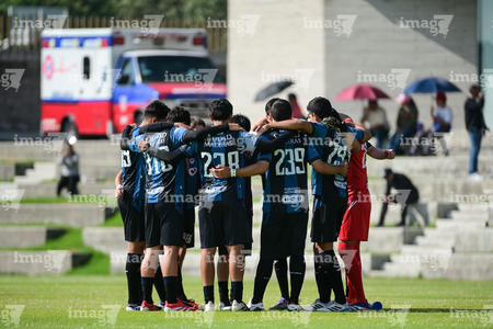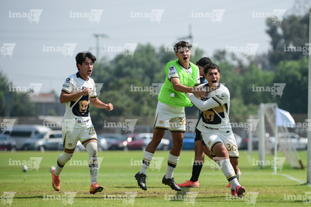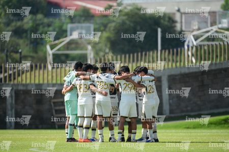 Ciudad de México, 1 de noviembre de 2025. Jugadores de Pumas, durante el partido correspondiente a la jornada 17 del torneo Apertura 2025 de la Liga BBVA MX categoría Sub17, entre los Pumas de la UNAM y los Gallos Blancos del Querétaro, realizado en Cantera. Foto: Imago7/ Alexis Chavez