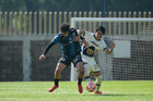 Ciudad de México, 1 de noviembre de 2025. Cristiano Silva y Axel Arellano, durante el partido correspondiente a la jornada 17 del torneo Apertura 2025 de la Liga BBVA MX categoría Sub17, entre los Pumas de la UNAM y los Gallos Blancos del Querétaro, realizado en Cantera. Foto: Imago7/ Alexis Chavez