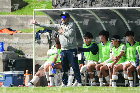 Ciudad de México, 1 de noviembre de 2025. Isidro Valencia, Director técnico, durante el partido correspondiente a la jornada 17 del torneo Apertura 2025 de la Liga BBVA MX categoría Sub17, entre los Pumas de la UNAM y los Gallos Blancos del Querétaro, realizado en Cantera. Foto: Imago7/ Alexis Chavez