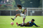 Ciudad de México, 1 de noviembre de 2025. Cristiano Silva, durante el partido correspondiente a la jornada 17 del torneo Apertura 2025 de la Liga BBVA MX categoría Sub17, entre los Pumas de la UNAM y los Gallos Blancos del Querétaro, realizado en Cantera. Foto: Imago7/ Alexis Chavez