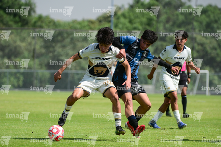 Ciudad de México, 1 de noviembre de 2025. Rogelio Carreón, durante el partido correspondiente a la jornada 17 del torneo Apertura 2025 de la Liga BBVA MX categoría Sub17, entre los Pumas de la UNAM y los Gallos Blancos del Querétaro, realizado en Cantera. Foto: Imago7/ Alexis Chavez