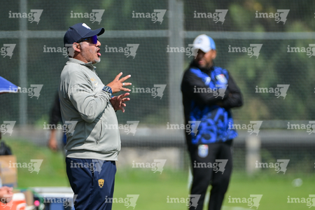 Ciudad de México, 1 de noviembre de 2025. Miguel Carreón, Director técnico, durante el partido correspondiente a la jornada 17 del torneo Apertura 2025 de la Liga BBVA MX categoría Sub17, entre los Pumas de la UNAM y los Gallos Blancos del Querétaro, realizado en Cantera. Foto: Imago7/ Alexis Chavez
