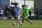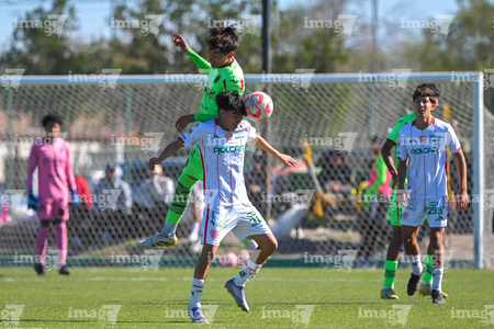 Ciudad Juárez, Chihuahua, 1 de noviembre de 2025. Josef Aburto y Alejandro Lozano, durante el partido correspondiente a la jornada 17 del torneo Apertura 2025 de la Liga BBVA MX categoría Sub17, entre los Bravos de FC Juárez y los Rayos del Necaxa, realizado en realizado en el Complejo Deportivo Bravos. Foto: Imago7/ José Zamora