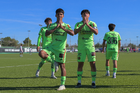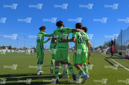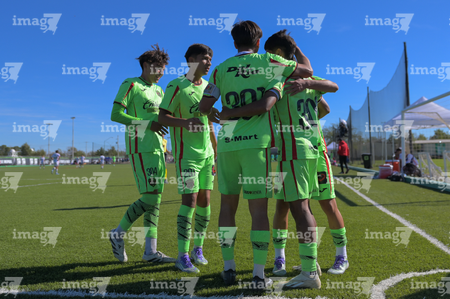 Ciudad Juárez, Chihuahua, 1 de noviembre de 2025. Jugadores de FC Juárez en festejo, durante el partido correspondiente a la jornada 17 del torneo Apertura 2025 de la Liga BBVA MX categoría Sub17, entre los Bravos de FC Juárez y los Rayos del Necaxa, realizado en realizado en el Complejo Deportivo Bravos. Foto: Imago7/ José Zamora