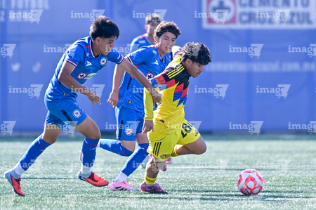 Ciudad de México, 1 de noviembre de 2025. Jesús Duarte, durante el partido correspondiente a la jornada 17 del torneo Apertura 2025 de la Liga BBVA MX categoría Sub 17, entre La Máquina Celeste de la Cruz Azul y las Águilas del América, realizado en el La Noria. Foto: Imago7/ Mauricio Ruiz