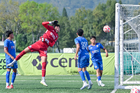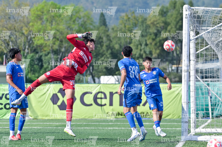 Ciudad de México, 1 de noviembre de 2025. Juan Rangel anota gol, durante el partido correspondiente a la jornada 17 del torneo Apertura 2025 de la Liga BBVA MX categoría Sub 17, entre La Máquina Celeste de la Cruz Azul y las Águilas del América, realizado en el La Noria. Foto: Imago7/ Mauricio Ruiz