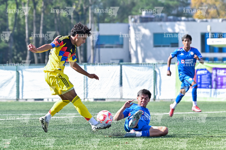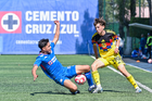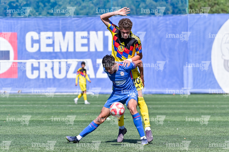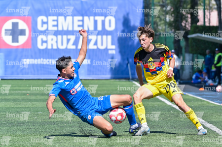 Ciudad de México, 1 de noviembre de 2025. Mauricio Ramírez y Nicolás Aguilar, durante el partido correspondiente a la jornada 17 del torneo Apertura 2025 de la Liga BBVA MX categoría Sub 17, entre La Máquina Celeste de la Cruz Azul y las Águilas del América, realizado en el La Noria. Foto: Imago7/ Mauricio Ruiz