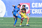 Ciudad de México, 1 de noviembre de 2025. Juan Rangel y Maximiliano García, durante el partido correspondiente a la jornada 17 del torneo Apertura 2025 de la Liga BBVA MX categoría Sub 17, entre La Máquina Celeste de la Cruz Azul y las Águilas del América, realizado en el La Noria. Foto: Imago7/ Mauricio Ruiz