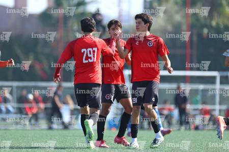 Tijuana, Baja California, 8 de octubre de 2025. Jugadores de Xolos en festejo de gol, durante el partido correspondiente a la jornada 18 del torneo Apertura 2025 de la Liga BBVA MX categoría Sub17, entre los Xolos de Tijuana y los Tigres de la UANL, realizado en el Centro de Iniciación Xoloitzcuintle. Foto: Imago7/ David Vega