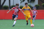Zapopan, Jalisco, 17 de septiembre de 2025. Ángel Ramírez (I) y Esteban Mendoza (D), durante el partido correspondiente a la jornada 1 del torneo Apertura 2025 de la Liga BBVA MX categoría Sub19, entre las Chivas Rayadas del Guadalajara y los Tigres de la UANL, realizado en la Cancha Gigantera 2. Foto: Imago7/ Juan Carlos Cubeyro.