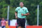 Zapopan, Jalisco, 17 de septiembre de 2025. Diego Hernández, Árbitro Central, durante el partido correspondiente a la jornada 1 del torneo Apertura 2025 de la Liga BBVA MX categoría Sub19, entre las Chivas Rayadas del Guadalajara y los Tigres de la UANL, realizado en la Cancha Gigantera 2. Foto: Imago7/ Juan Carlos Cubeyro.