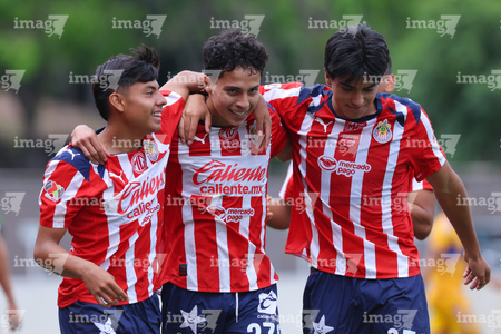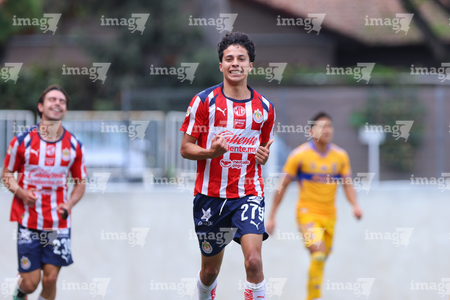 Zapopan, Jalisco, 17 de septiembre de 2025. José Elenes en festejo de gol, durante el partido correspondiente a la jornada 1 del torneo Apertura 2025 de la Liga BBVA MX categoría Sub19, entre las Chivas Rayadas del Guadalajara y los Tigres de la UANL, realizado en la Cancha Gigantera 2. Foto: Imago7/ Juan Carlos Cubeyro.