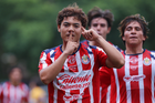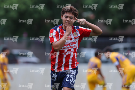 Zapopan, Jalisco, 17 de septiembre de 2025. Fernando Niño en festejo de gol, durante el partido correspondiente a la jornada 1 del torneo Apertura 2025 de la Liga BBVA MX categoría Sub19, entre las Chivas Rayadas del Guadalajara y los Tigres de la UANL, realizado en la Cancha Gigantera 2. Foto: Imago7/ Juan Carlos Cubeyro.