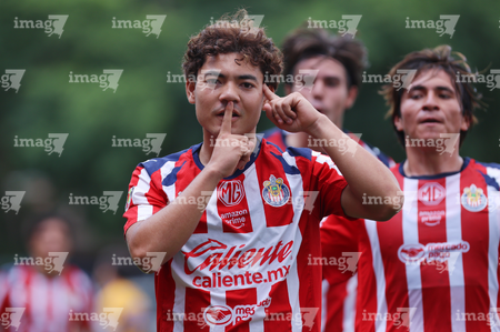 Zapopan, Jalisco, 17 de septiembre de 2025. Esteban Mendoza en festejo de gol, durante el partido correspondiente a la jornada 1 del torneo Apertura 2025 de la Liga BBVA MX categoría Sub19, entre las Chivas Rayadas del Guadalajara y los Tigres de la UANL, realizado en la Cancha Gigantera 2. Foto: Imago7/ Juan Carlos Cubeyro.