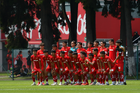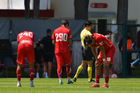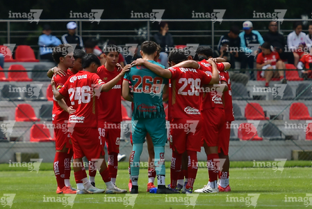 Metepec, Estado de México, 24 de septiembre de 2025. Jugadores del Toluca sub19 , durante el partido correspondiente a la jornada 10 del torneo Apertura 2025 de la Liga BBVA MX categoría Sub19, entre los Diablos Rojos del Toluca y los Rayados del Monterrey, realizado en las instalaciones de Metepec. Foto: Imago7 /Arturo Hernandez