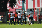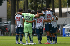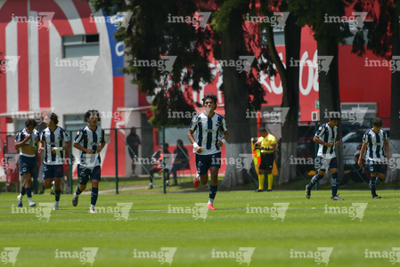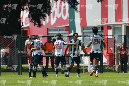 Metepec, Estado de México, 24 de septiembre de 2025. Jugadores de Monterrey sub19 en festejo de gol, durante el partido correspondiente a la jornada 10 del torneo Apertura 2025 de la Liga BBVA MX categoría Sub19, entre los Diablos Rojos del Toluca y los Rayados del Monterrey, realizado en las instalaciones de Metepec. Foto: Imago7 /Arturo Hernandez