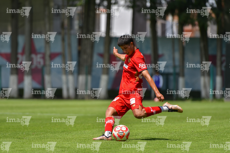 Metepec, Estado de México, 24 de septiembre de 2025. Cedric Sánchez , durante el partido correspondiente a la jornada 10 del torneo Apertura 2025 de la Liga BBVA MX categoría Sub19, entre los Diablos Rojos del Toluca y los Rayados del Monterrey, realizado en las instalaciones de Metepec. Foto: Imago7 /Arturo Hernandez