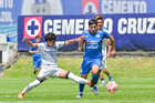Ciudad de México, 24 de septiembre de 2025. Rubén Segura y Francisco Araujo, durante el partido correspondiente a la jornada 10 del torneo Apertura 2025 de la Liga BBVA MX categoría Sub19, entre la Máquina Celeste del Cruz Azul y los Gallos Blancos del Querétaro, realizado en La Noria. Foto: Imago7/ Mauricio Ruiz
