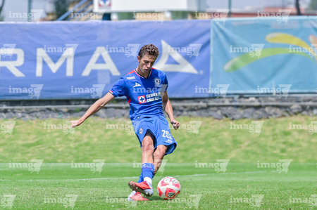 descCiudad de México, 24 de septiembre de 2025. Emilio Albarran, durante el partido correspondiente a la jornada 10 del torneo Apertura 2025 de la Liga BBVA MX categoría Sub19, entre la Máquina Celeste del Cruz Azul y los Gallos Blancos del Querétaro, realizado en La Noria. Foto: Imago7/ Mauricio Ruiz