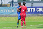 Ciudad de México, 24 de septiembre de 2025. Roberto Moreno y Marcio Araujo en festejo, durante el partido correspondiente a la jornada 10 del torneo Apertura 2025 de la Liga BBVA MX categoría Sub19, entre la Máquina Celeste del Cruz Azul y los Gallos Blancos del Querétaro, realizado en La Noria. Foto: Imago7/ Mauricio Ruiz