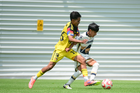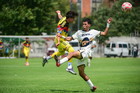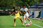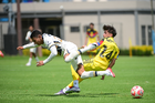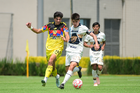 Ciudad de México, 27 de septiembre de 2025. Jhovani Valle y Diego Villaluz, durante el partido correspondiente a la jornada 11 del torneo Apertura 2025 de la Liga BBVA MX categoría Sub19, entre las Águilas del América y los Pumas de la UNAM, realizado en Coapa. Foto: Imago7/ Alexis Chavez