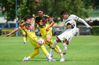 Ciudad de México, 27 de septiembre de 2025. José Mancilla y Diego Muñoz, durante el partido correspondiente a la jornada 11 del torneo Apertura 2025 de la Liga BBVA MX categoría Sub19, entre las Águilas del América y los Pumas de la UNAM, realizado en Coapa. Foto: Imago7/ Alexis Chavez