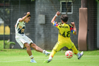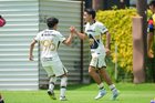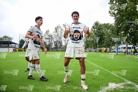 Ciudad de México, 27 de septiembre de 2025. Axel Rodríguez anota gol, durante el partido correspondiente a la jornada 11 del torneo Apertura 2025 de la Liga BBVA MX categoría Sub19, entre las Águilas del América y los Pumas de la UNAM, realizado en Coapa. Foto: Imago7/ Alexis Chavez