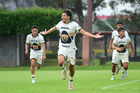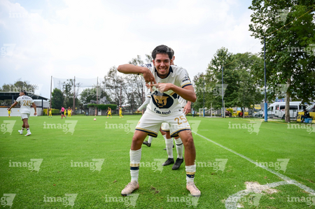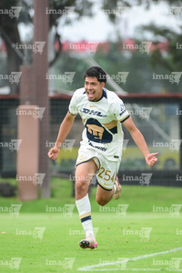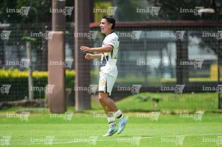 Ciudad de México, 27 de septiembre de 2025. Axel Rodríguez en festejo de gol, durante el partido correspondiente a la jornada 11 del torneo Apertura 2025 de la Liga BBVA MX categoría Sub19, entre las Águilas del América y los Pumas de la UNAM, realizado en Coapa. Foto: Imago7/ Alexis Chavez