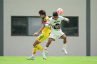Ciudad de México, 27 de septiembre de 2025. Alejandro Cárdenas y Johan Ocampo, durante el partido correspondiente a la jornada 11 del torneo Apertura 2025 de la Liga BBVA MX categoría Sub19, entre las Águilas del América y los Pumas de la UNAM, realizado en Coapa. Foto: Imago7/ Alexis Chavez