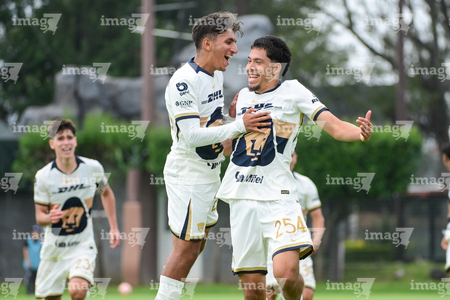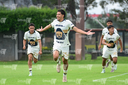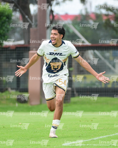 Ciudad de México, 27 de septiembre de 2025. Jan Zapata en festejo de gol, durante el partido correspondiente a la jornada 11 del torneo Apertura 2025 de la Liga BBVA MX categoría Sub19, entre las Águilas del América y los Pumas de la UNAM, realizado en Coapa. Foto: Imago7/ Alexis Chavez