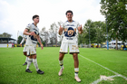Ciudad de México, 27 de septiembre de 2025. Alejandro Cárdenas y Pablo Ibarra, durante el partido correspondiente a la jornada 11 del torneo Apertura 2025 de la Liga BBVA MX categoría Sub19, entre las Águilas del América y los Pumas de la UNAM, realizado en Coapa. Foto: Imago7/ Alexis Chavez