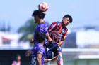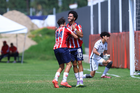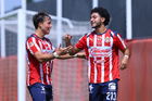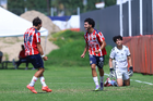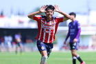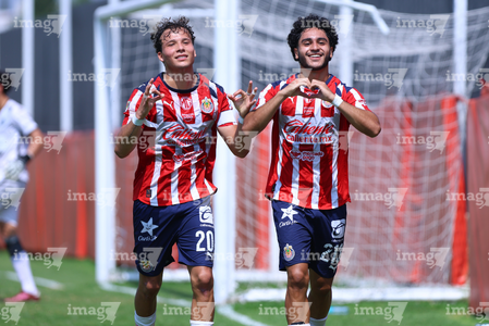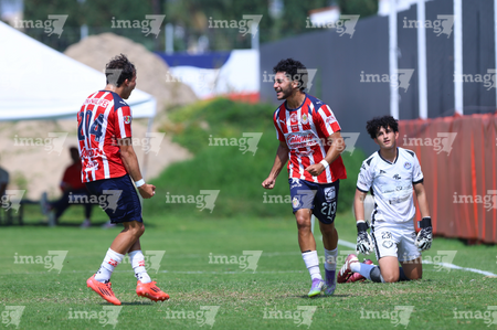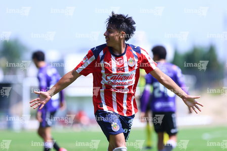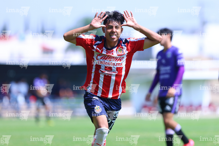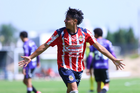 Zapopan, Jalisco, 18 de octubre de 2025. Zinedine Hernández en festejo de gol, durante el partido correspondiente a la jornada 13 del torneo Apertura 2025 de la Liga BBVA MX categoría Sub19, entre las Chivas Rayadas del Guadalajara y los Cañoneros del Mazatlán FC, realizado en la Cancha Gigantera 2. Foto: Imago7/ Juan Carlos Cubeyro.