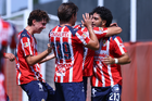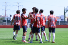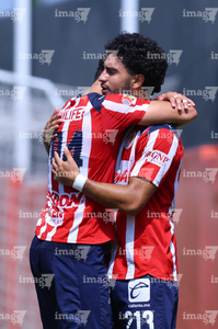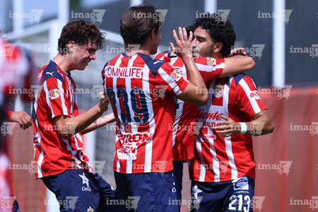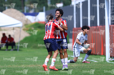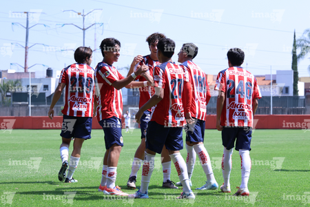 Zapopan, Jalisco, 18 de octubre de 2025. Jugadores de Chivas en festejo de gol, durante el partido correspondiente a la jornada 13 del torneo Apertura 2025 de la Liga BBVA MX categoría Sub19, entre las Chivas Rayadas del Guadalajara y los Cañoneros del Mazatlán FC, realizado en la Cancha Gigantera 2. Foto: Imago7/ Juan Carlos Cubeyro.