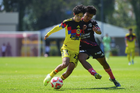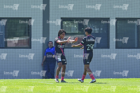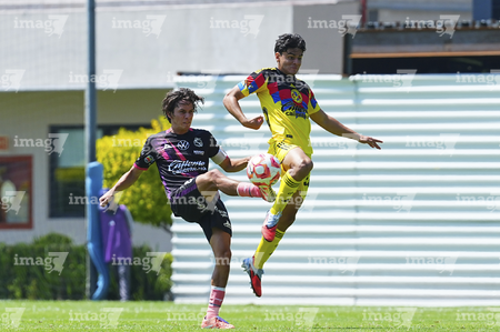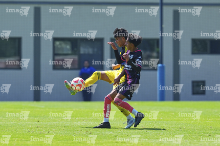 Ciudad de México, 21 de octubre de 2025. y Dominic Guerrero, durante el partido correspondiente a la jornada 14 del torneo Apertura 2025 de la Liga BBVA MX categoría Sub19, entre las Águilas del América y el Club Puebla, realizado en Coapa. Foto: Imago7/ Manlio Contreras