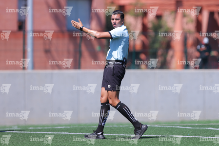 Zapopan, Jalisco, 22 de octubre de 2025. Diego Hernández, Árbitro Central, durante el partido correspondiente a la jornada 14 del torneo Apertura 2025 de la Liga BBVA MX categoría Sub19, entre los Rojinegros del Atlas y los Esmeraldas del León, realizado en la Academia AGA. Foto: Imago7/ Juan Carlos Cubeyro.