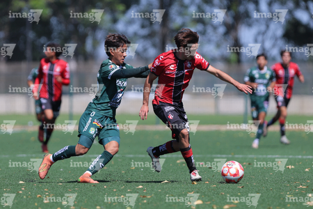 Zapopan, Jalisco, 22 de octubre de 2025. , durante el partido correspondiente a la jornada 14 del torneo Apertura 2025 de la Liga BBVA MX categoría Sub19, entre los Rojinegros del Atlas y los Esmeraldas del León, realizado en la Academia AGA. Foto: Imago7/
