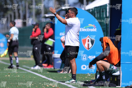 Zapopan, Jalisco, 22 de octubre de 2025. Luis Santillán, Director Técnico, durante el partido correspondiente a la jornada 14 del torneo Apertura 2025 de la Liga BBVA MX categoría Sub19, entre los Rojinegros del Atlas y los Esmeraldas del León, realizado en la Academia AGA. Foto: Imago7/ Juan Carlos Cubeyro.
