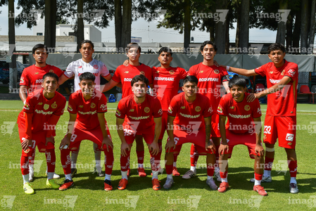Metepec, Estado de México, 8 de noviembre de 2025. Foto de equipo de Jugadores del Toluca sub19 , durante el partido correspondiente a la jornada 17 del torneo Apertura 2025 de la Liga BBVA MX categoría Sub19, entre los Diablos Rojos del Toluca y las Águilas del América, realizado en las instalaciones de Metepec. Foto: Imago7/ Arturo Hernandez