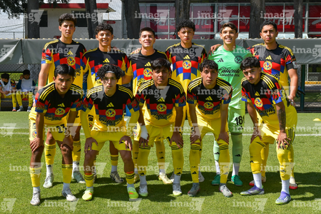 Metepec, Estado de México, 8 de noviembre de 2025. Foto de equipo de jugadores del Club América sub19 durante el partido correspondiente a la jornada 17 del torneo Apertura 2025 de la Liga BBVA MX categoría Sub19, entre los Diablos Rojos del Toluca y las Águilas del América, realizado en las instalaciones de Metepec. Foto: Imago7/ Arturo Hernandez