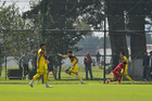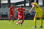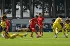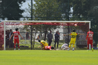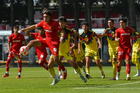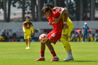Metepec, Estado de México, 8 de noviembre de 2025. Alejandro Cárdenas anota gol, durante el partido correspondiente a la jornada 17 del torneo Apertura 2025 de la Liga BBVA MX categoría Sub19, entre los Diablos Rojos del Toluca y las Águilas del América, realizado en las instalaciones de Metepec. Foto: Imago7/ Arturo Hernandez