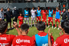 Metepec, Estado de México, 8 de noviembre de 2025. Jugadores del Toluca , durante el partido correspondiente a la jornada 17 del torneo Apertura 2025 de la Liga BBVA MX categoría Sub19, entre los Diablos Rojos del Toluca y las Águilas del América, realizado en las instalaciones de Metepec. Foto: Imago7/ Arturo Hernandez