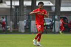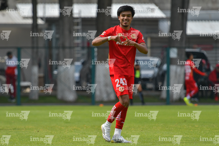 Metepec, Estado de México, 8 de noviembre de 2025. Cedric Sánchez en festejo de gol, durante el partido correspondiente a la jornada 17 del torneo Apertura 2025 de la Liga BBVA MX categoría Sub19, entre los Diablos Rojos del Toluca y las Águilas del América, realizado en las instalaciones de Metepec. Foto: Imago7/ Arturo Hernandez