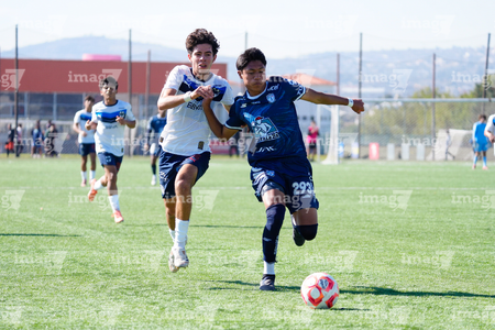 Pachuca, Hidalgo, 12 de noviembre de 2025. Uziel San Martin (D), durante el partido correspondiente a la ida de los Cuartos de Final del torneo Apertura 2025 de la Liga BBVA MX categoría Sub17, entre los Tuzos del Pachuca y los Rayados de Monterrey, realizado en la Universidad del Futbol. Foto: Imago7/ Elizabeth Hernández